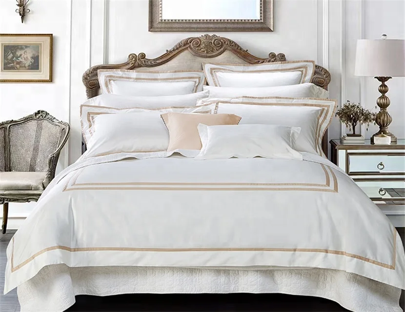 Home Hotel Bed Sheet Bedding Royal Comforter Set Cotton Queen Size Golden Bed Sheet Bedding Sets