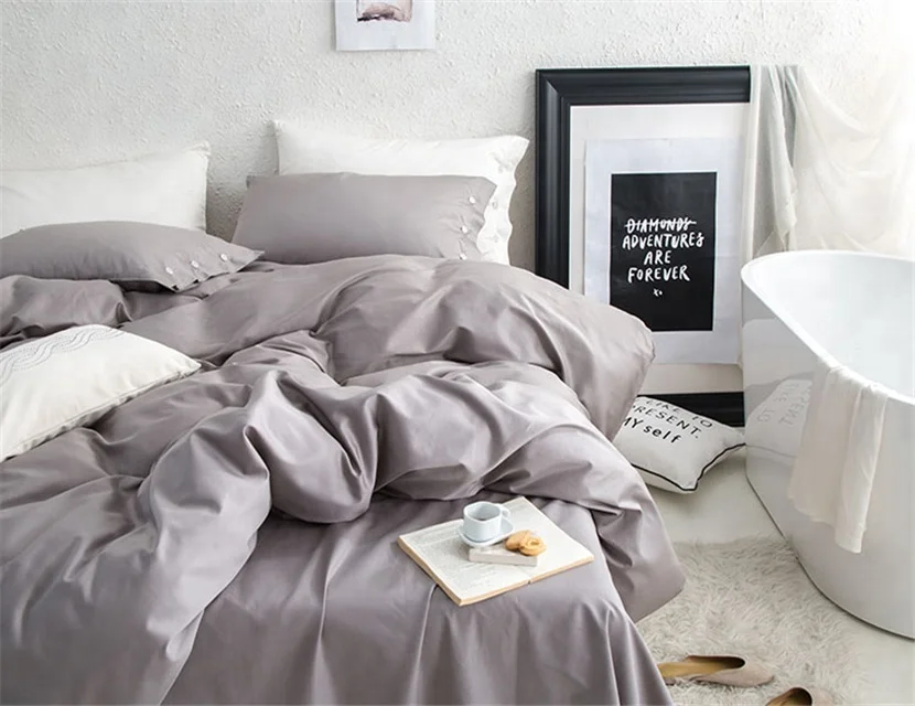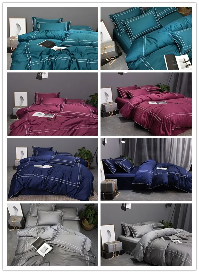 100% Satin Duvet Cotton Home Luxury Bed Sheet Bedding Set Grey