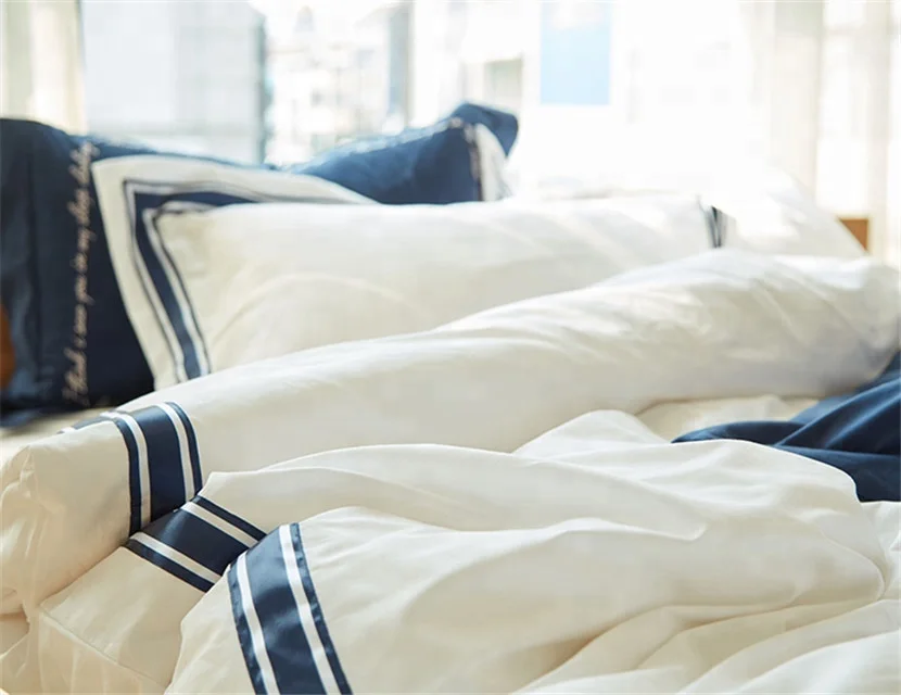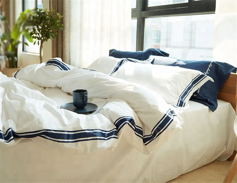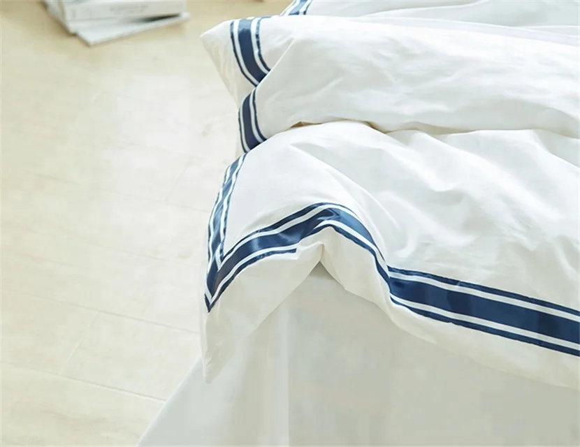Morden Plain Color Navy White Home Hotel Bed Sheets Bed Linen Bedding Set