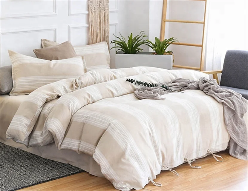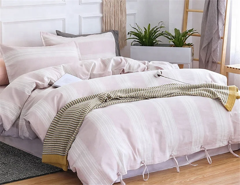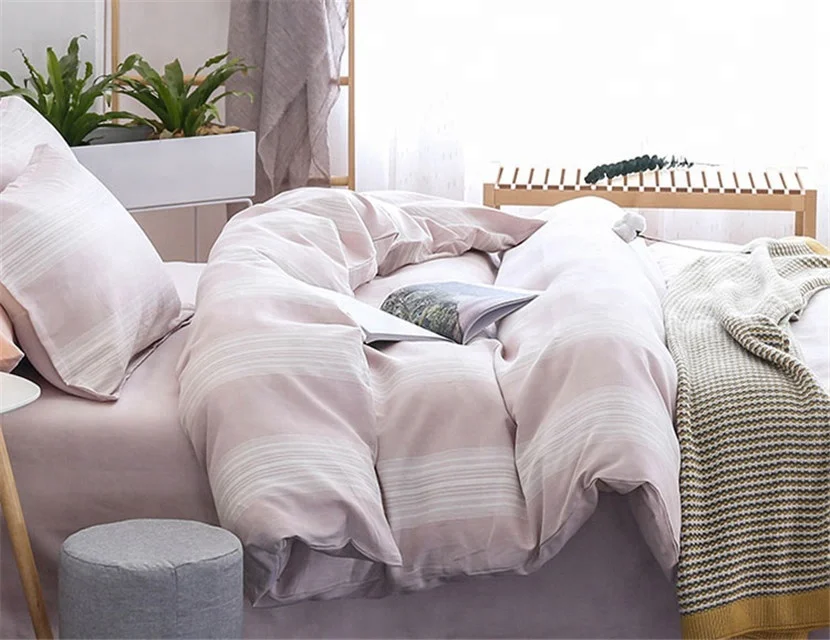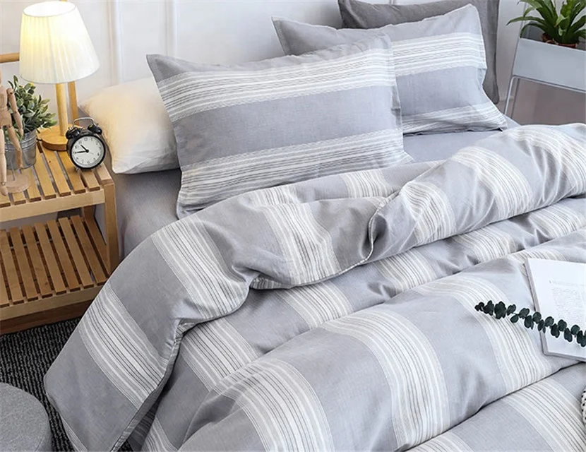Home Bed Sheets Luxury European Style Plain Stripe Bedding Set