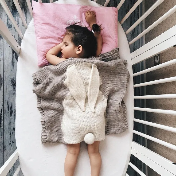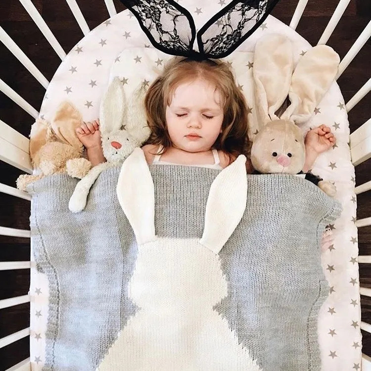 China Supplier Cute Rabbit Baby Knitted Blanket With Hood