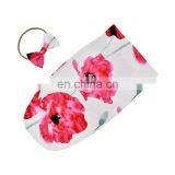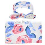 Hot Sale Baby Floral Swaddle Blanket Wrap Rabbit Ear Set With Hair Band