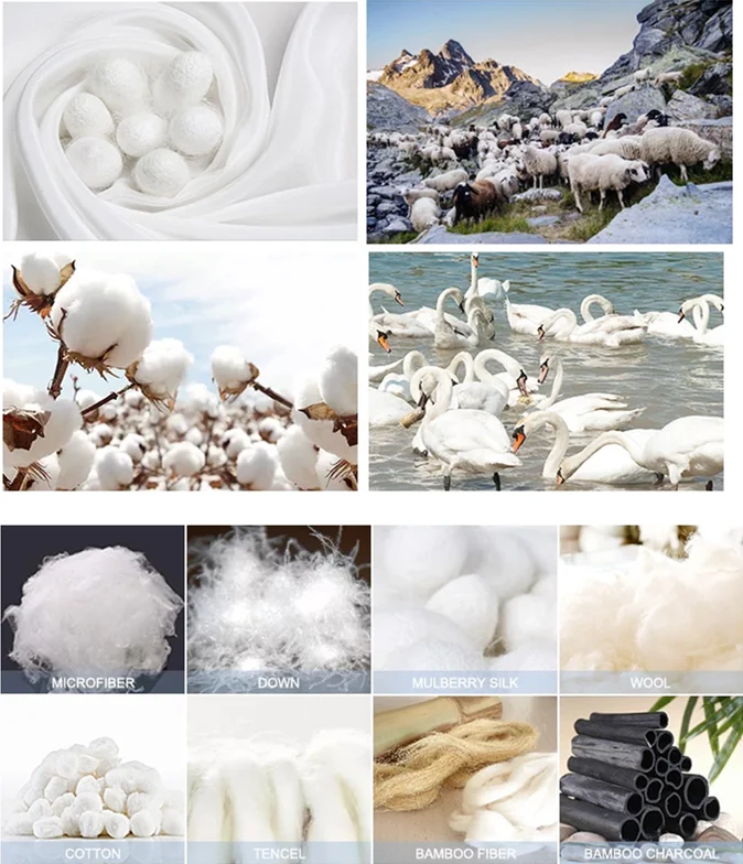 * In the material process, we use 60℃ water to clean, wash 2 hours per 100 kg for 6 times to ensure the cleanliness of the fluff .After washing, drying, dusting, degaussing and other steps to make it Soft, Lightweight, Breathable, Hypo-allergenic, Allergy free,Environmental,Anti-bacteria,Fit for sensitive skin, Warmer and can keep you warm all night.