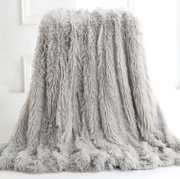 Fluffy Faux Fur Throw Blanket Cozy Elegant Bedding Cover Chic Decorative for Sofa Chair Bedroom