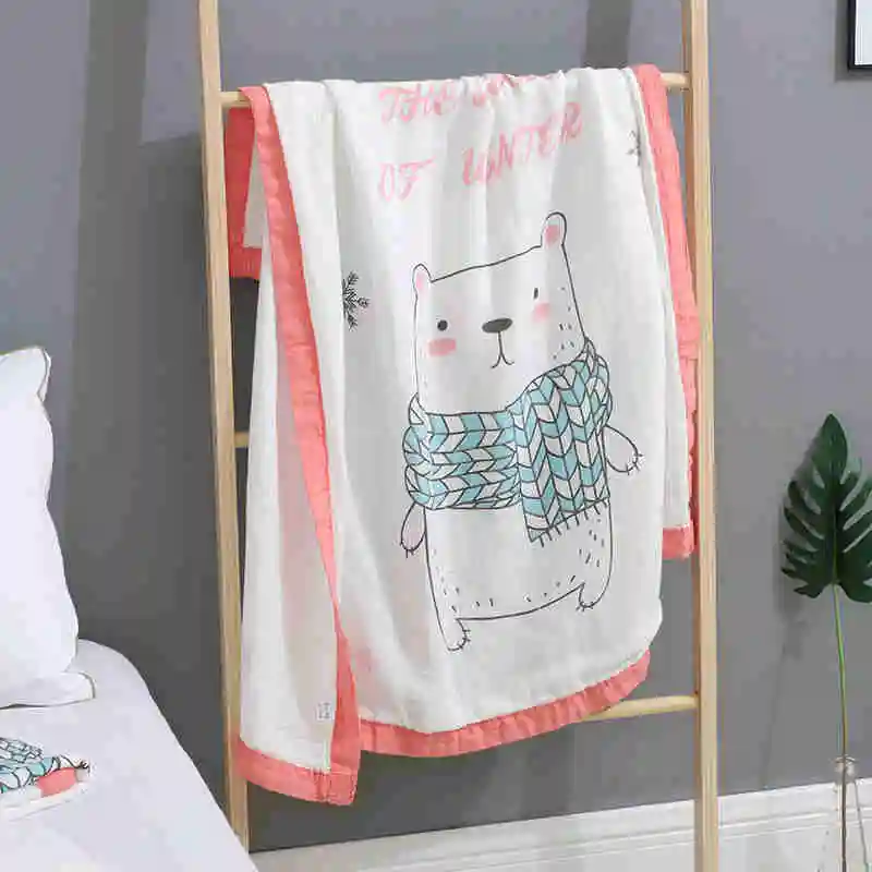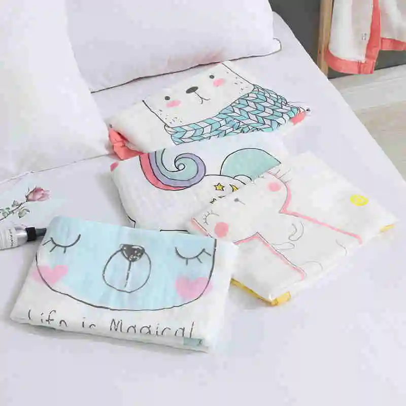 I@home Textile Thin Ice Silk Cartoon Print Baby Bath Towel Muslin 100% Cotton Baby Blanket Swaddle