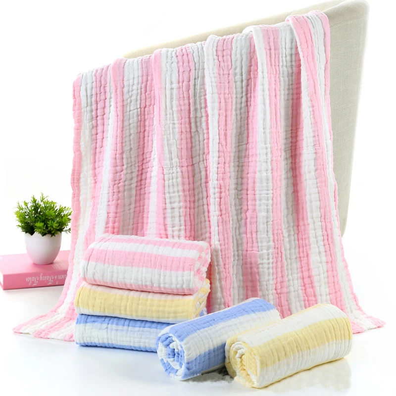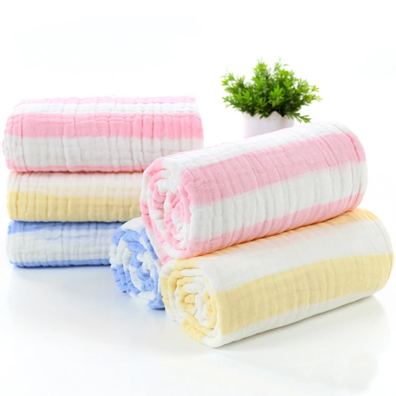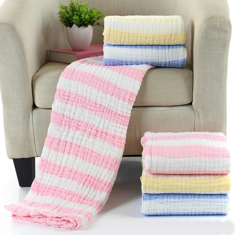 I@home 6 Layers Gauze Bath Towel Wide Color Edge Cotton Newborn Baby Swaddle Blanket