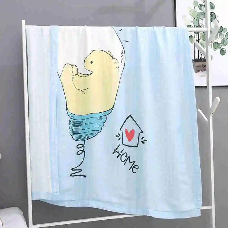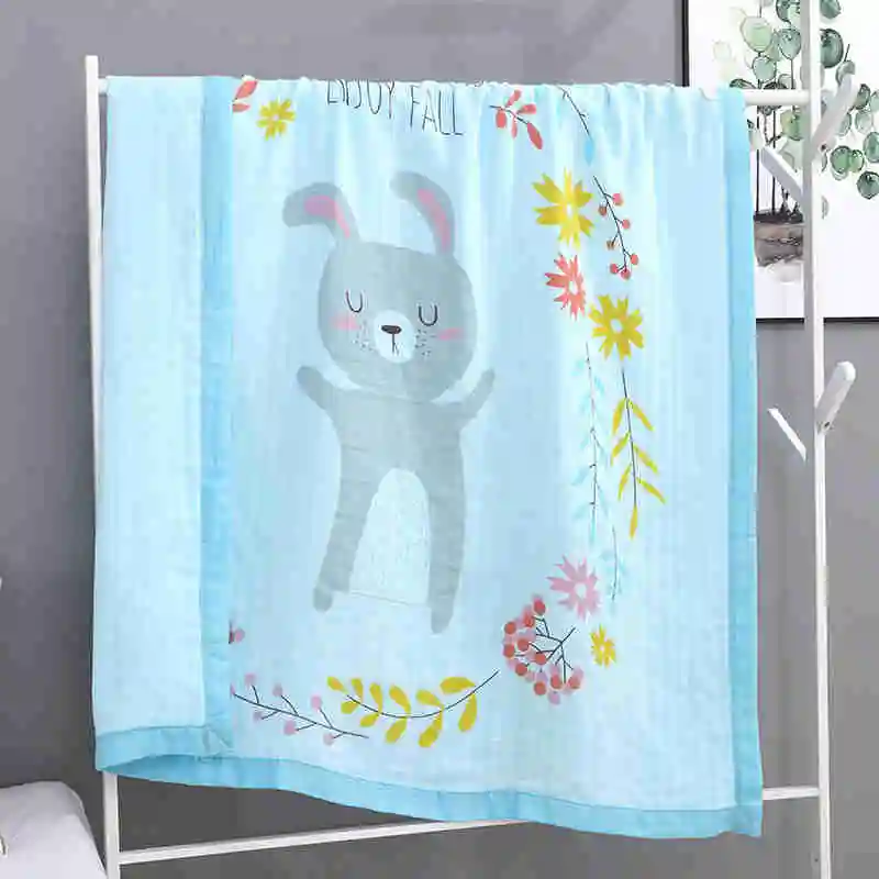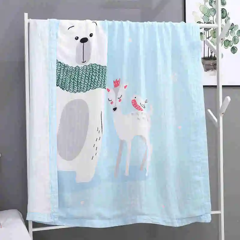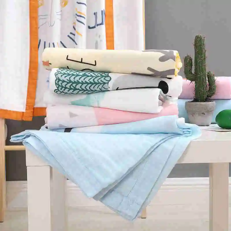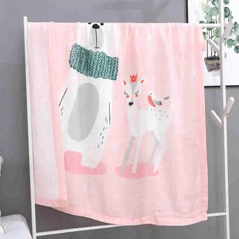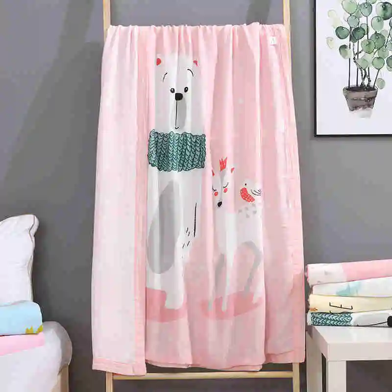 I@home Textile Thin Ice Silk Cartoon Print Baby Bath Towel Muslin 100% Cotton Baby Blanket Swaddle