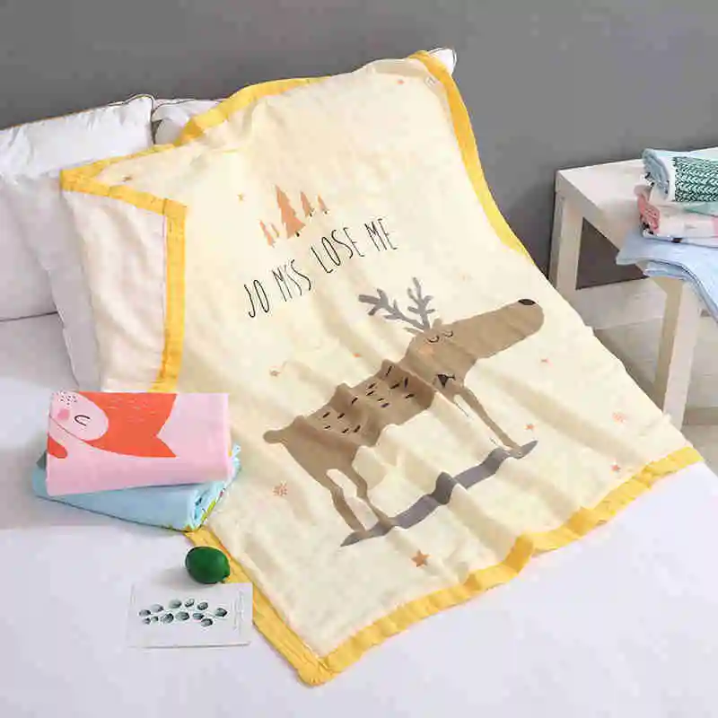 Home > Products > Baby blanket > I@home Muslin Carton Children Towel Four Layer Bamboo Cotton Baby Wrap Blanket