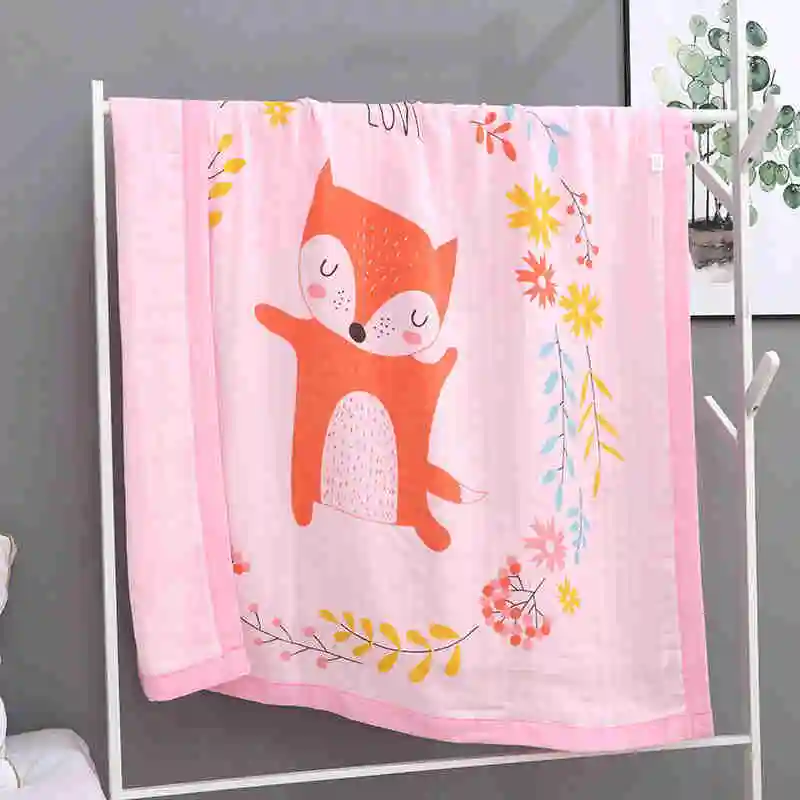 I@home Cartoon Fox Print Baby Bath Towel Sleeping Muslin Swadle Baby Quilt Blanket Bamboo