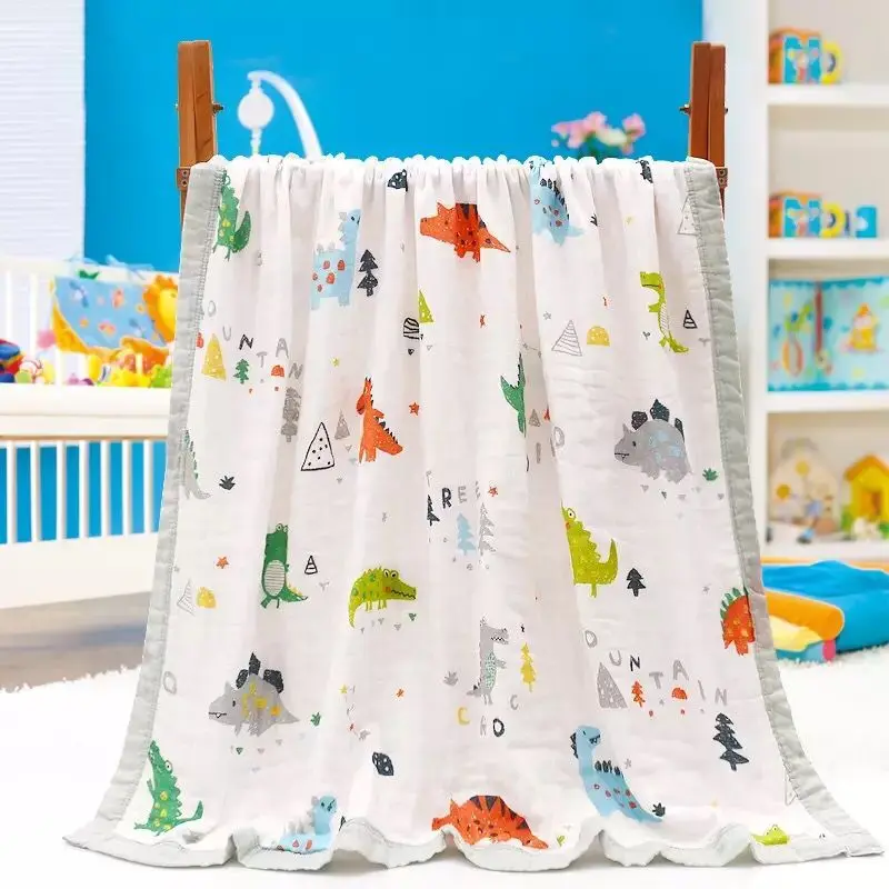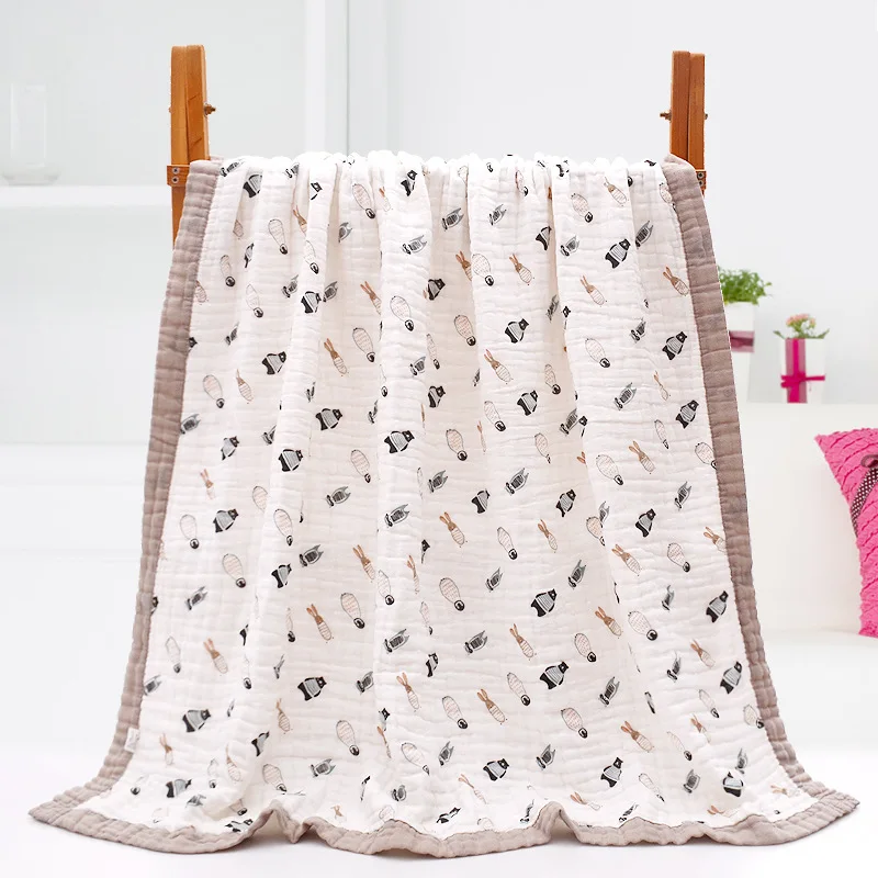 I@home Textile Thin Ice Silk Cartoon Print Baby Bath Towel Muslin 100% Cotton Baby Blanket Swaddle