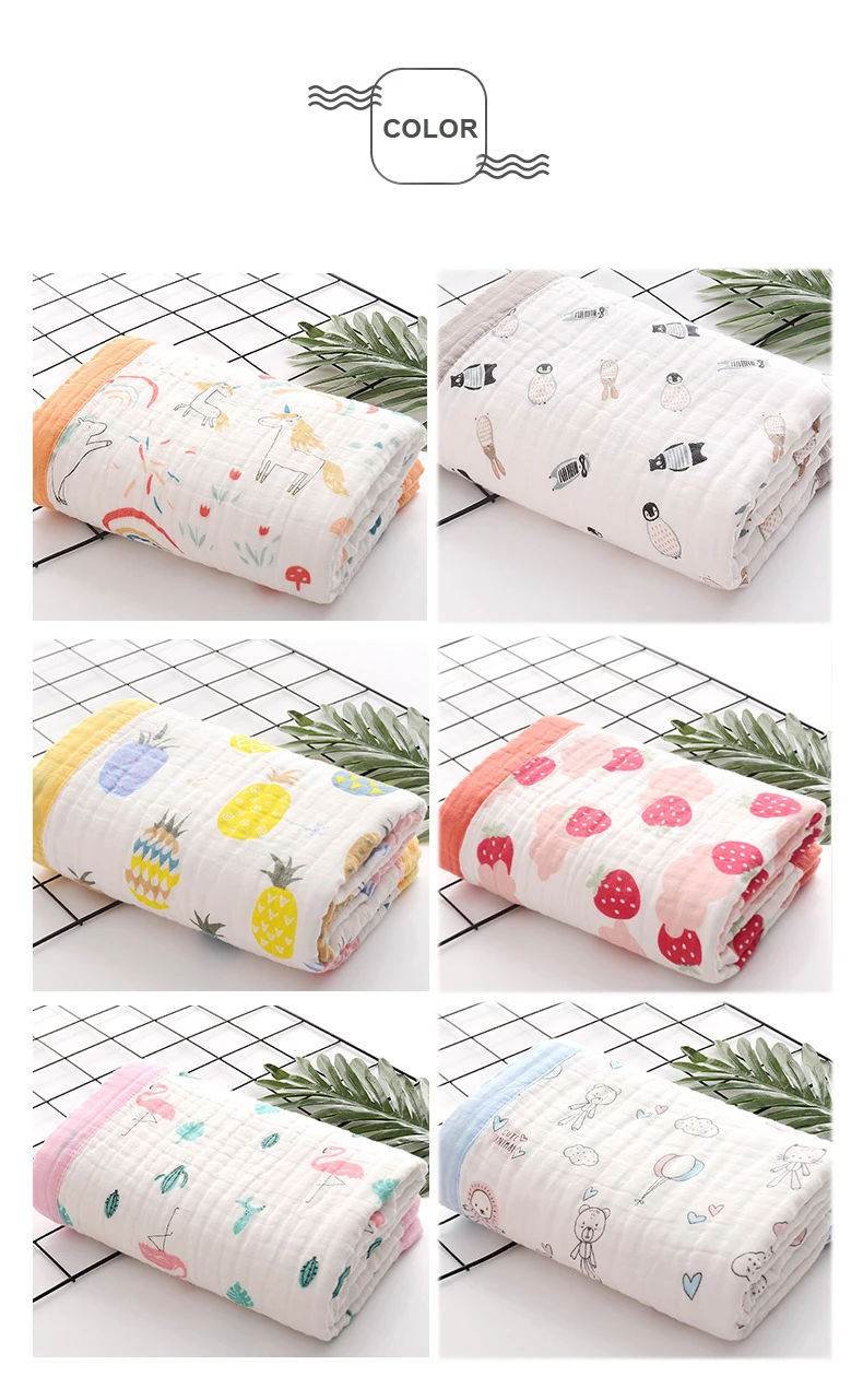 Home > Products > Baby blanket > I@home 6 Layers Gauze Bath Towel Wide Color Edge Cotton Newborn Baby Swaddle Blanket