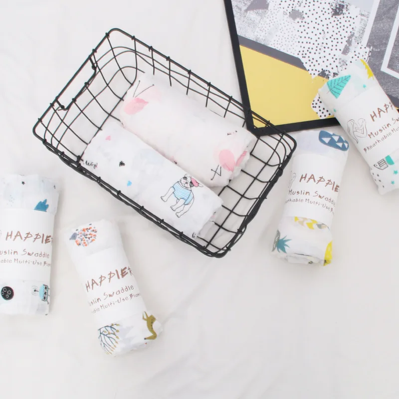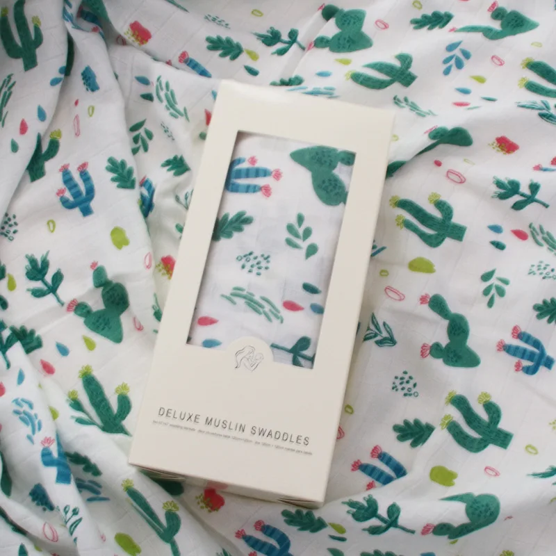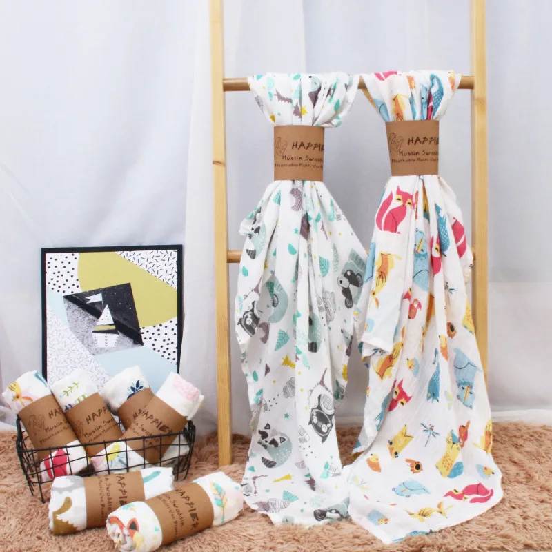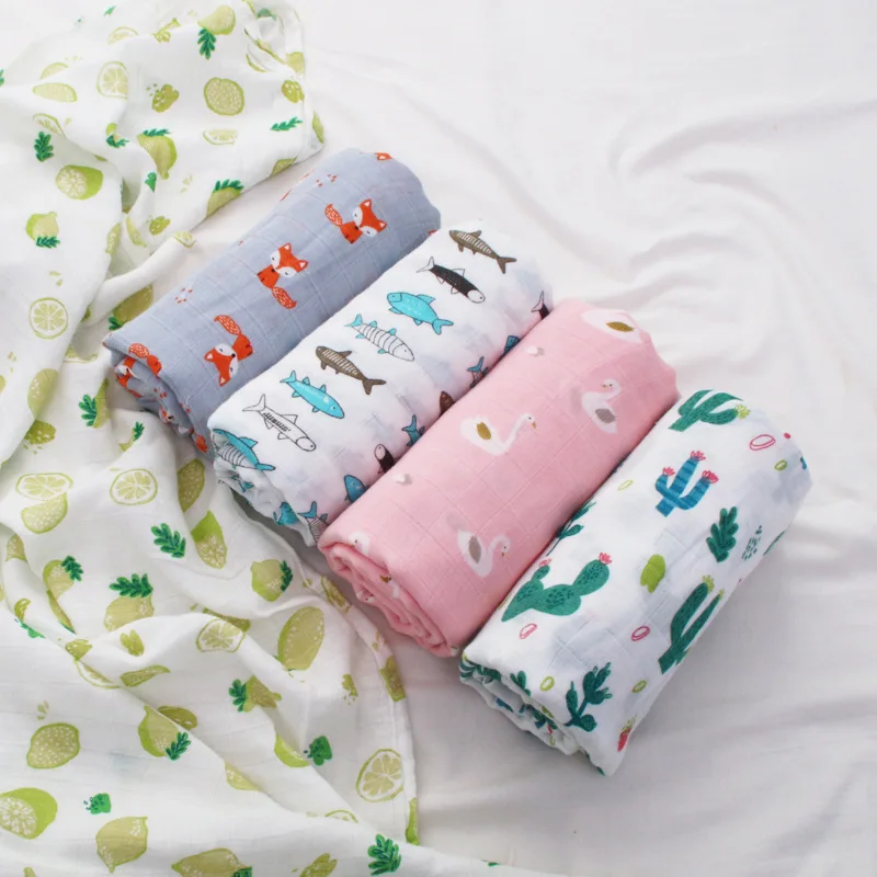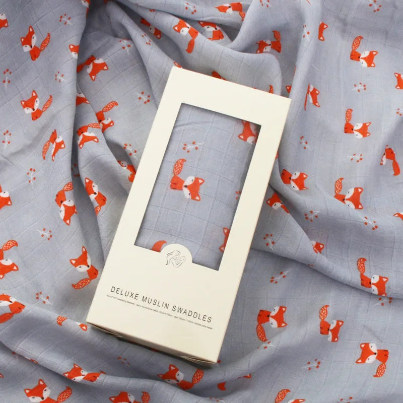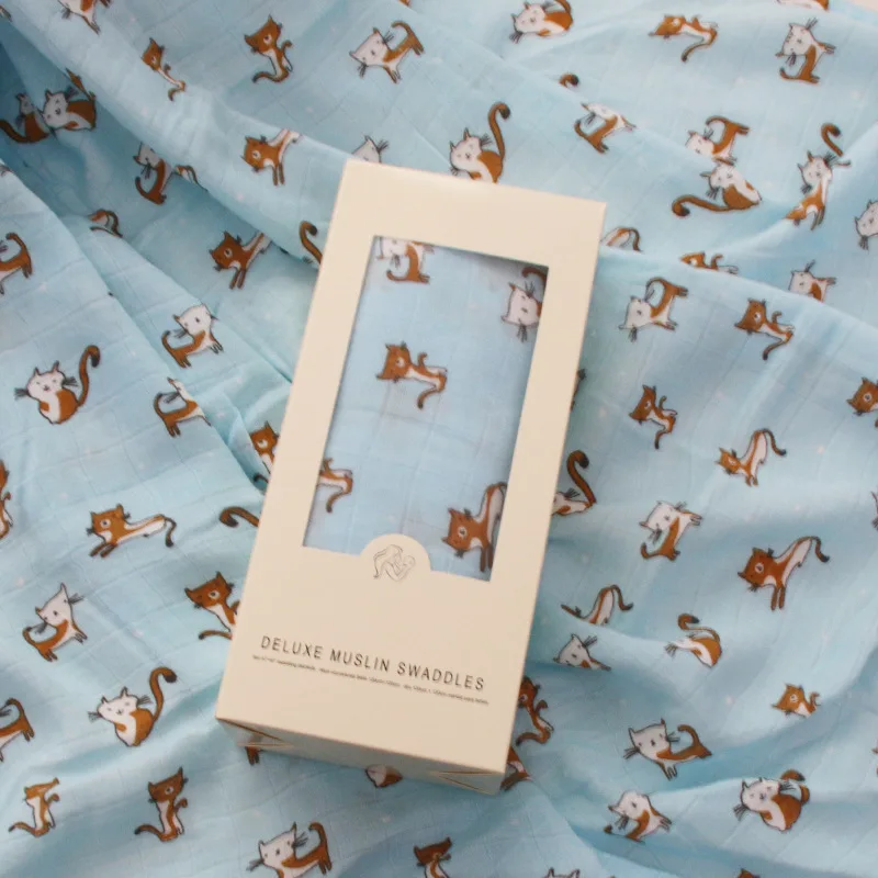 I@home Cartoon Fox Print Baby Bath Towel Sleeping Muslin Swadle Baby Quilt Blanket Bamboo