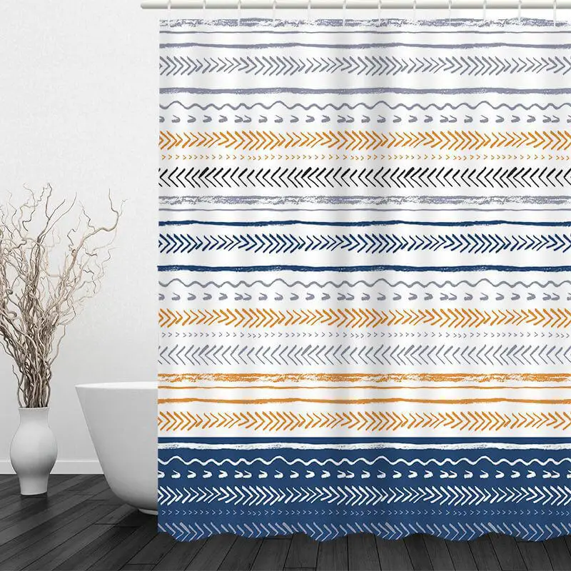 I@home Wholesale Geometric Stripe Polyester Printed Shower Curtain Modern Bathroom