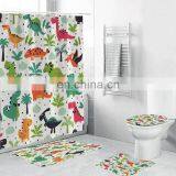 I@home Wholesale Kids Bathroom Cartoon Dinosaurs Printed Shower Curtain Sets With Rugs 4 Pieces