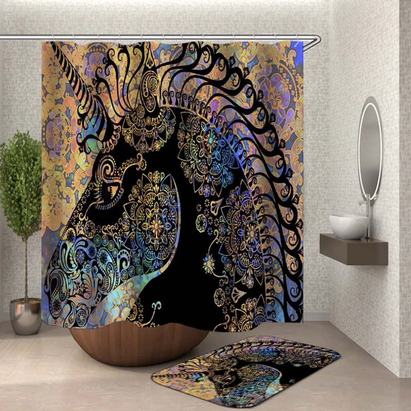 Home > Products > Shower Curtain series > I@home Sky Horse Colorful Magical Polyester Fabric Animal Unicorn Shower Curtain Bathroom With Hooks