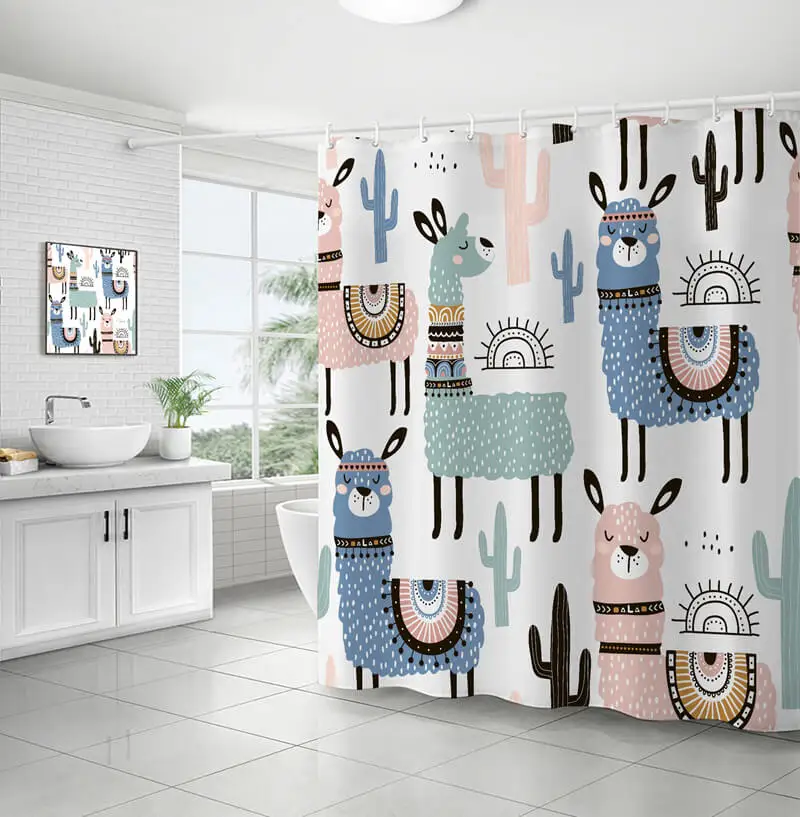 I@home Eco Friendly Animals Print Alpaca Digital Custom Cartoon Bathroom Shower Curtain Cactus