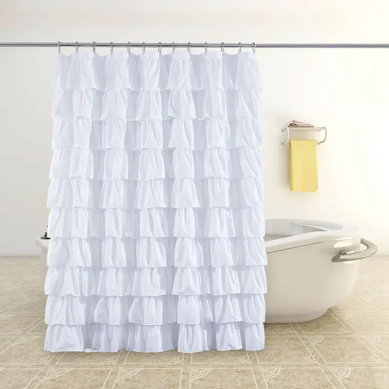 I@home Modern Wholesale Eco Friendly Waterproof Bathroom White Ruffle Shower Curtain Polyester