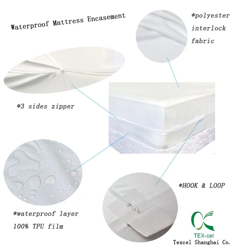 100%Waterproof Polyester Knitting Fabric Mattress Encasement Zipper Style