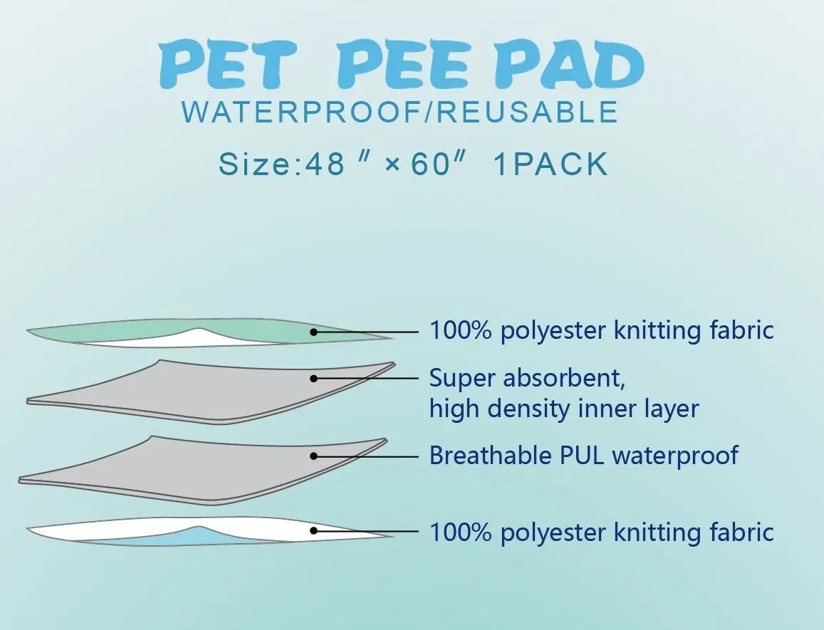 Waterproof Dog Pad and Puppy Training Pads Washable Pads Reusable