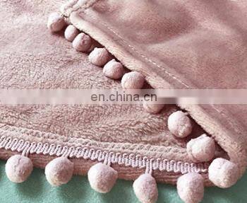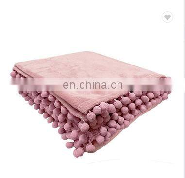 Home > Light Industry & Daily Use > Bedding > Blanket > 100% Polyester Flannel Blanket With Pom Border Two Sides Brushed Cozy Fleece Throw