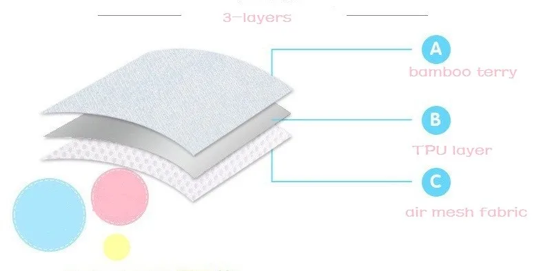 Each layers of Colorful Waterproof Bamboo Terry TPU Mesh Fabric Reusable Baby Diapers