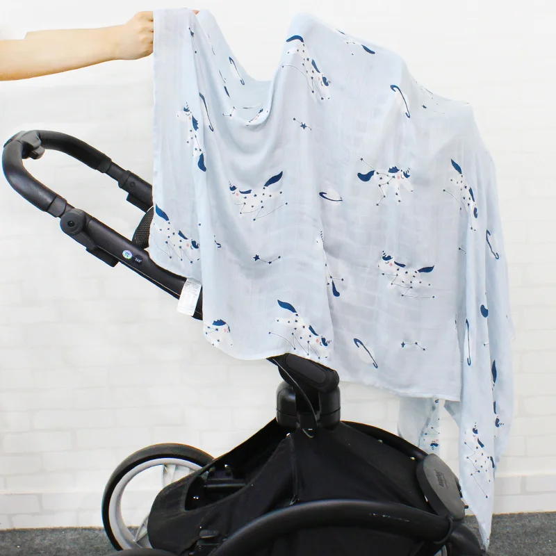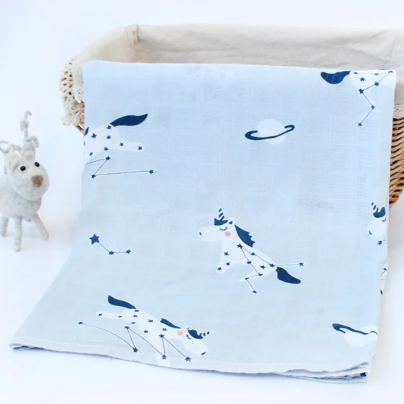 Ready To Ship Organic Cotton Muslin Wrap Custom Print Baby Swaddle Blanket
