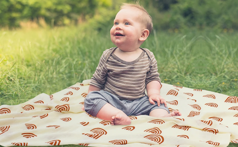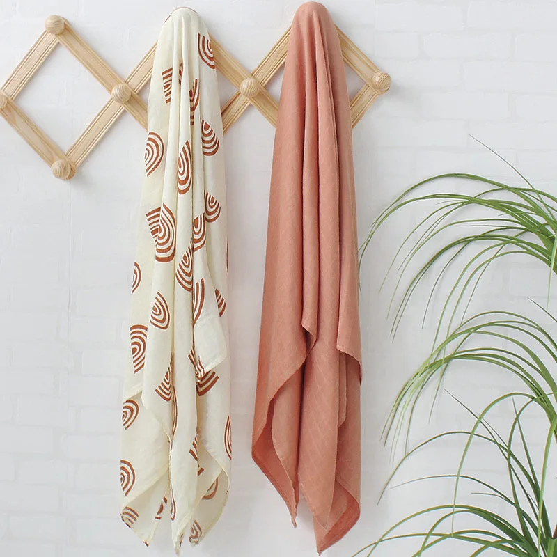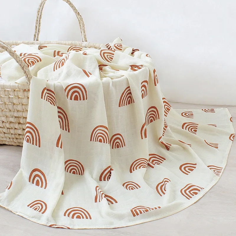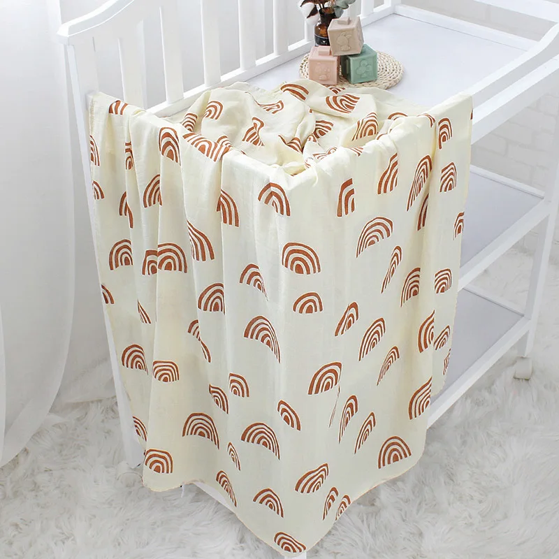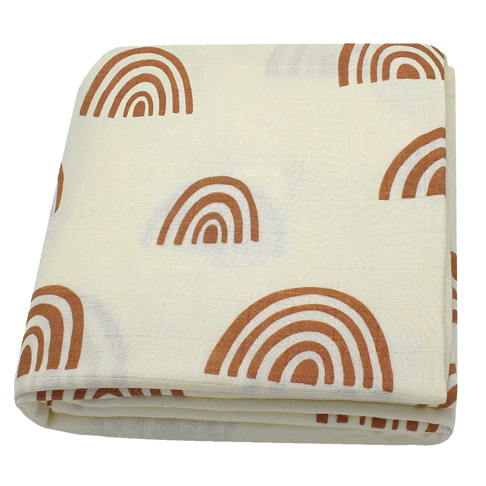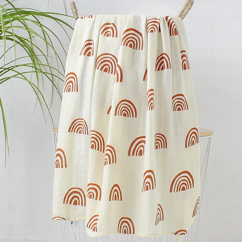 Custom Print Rainbow Organic Muslin Wrap Bamboo Cotton Solid Baby Swaddle Blankets For Newborn Infants