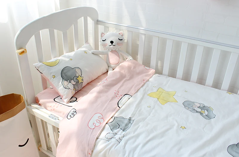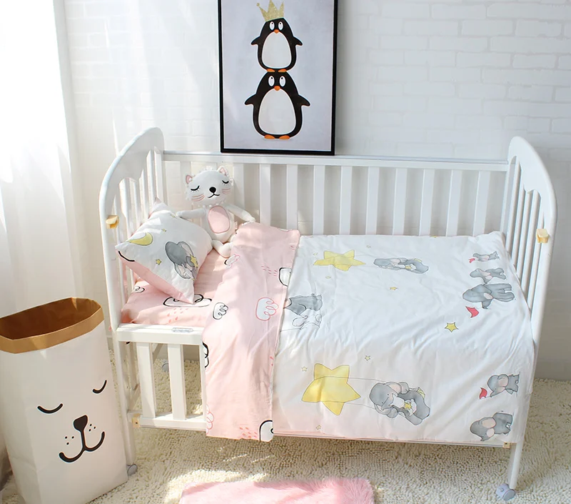 Wholesale Custom Pink Elephant Printed 100% Cotton Organic Babies Bedding Sheet Blanket Set Nursery Baby Bed Covers For Crib