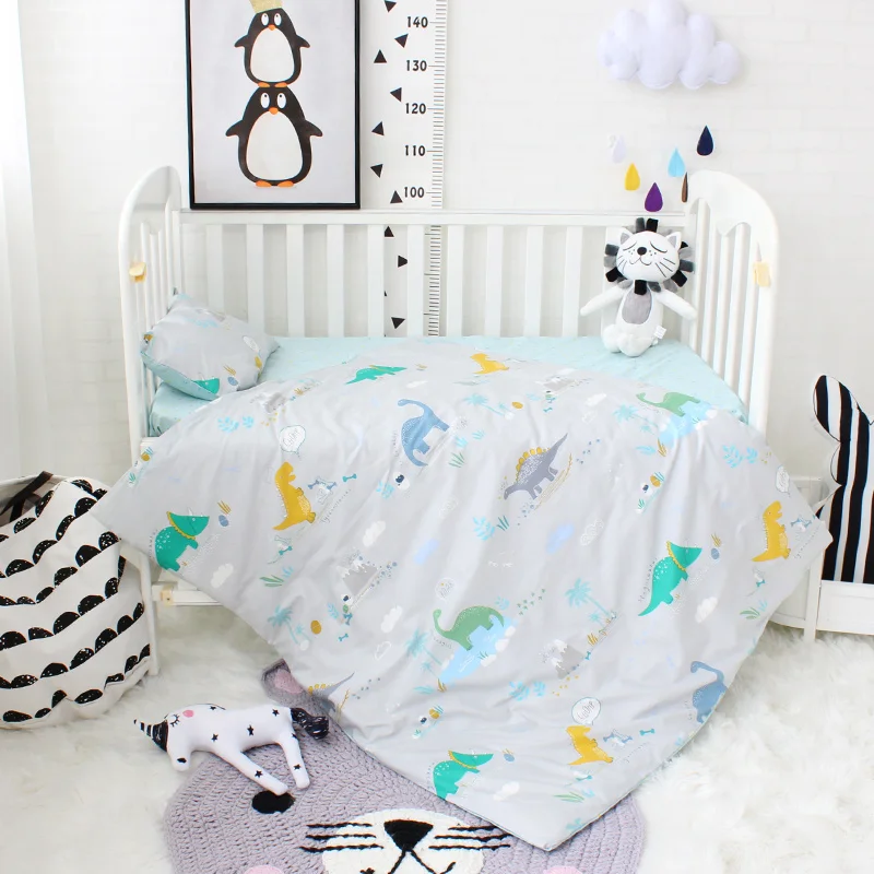 Custom Organic 100% Cotton Baby Boy Girl Nursery Sleep Bed Sheet Quilt Cover Cot Bedding 3 Piece Set For Baby