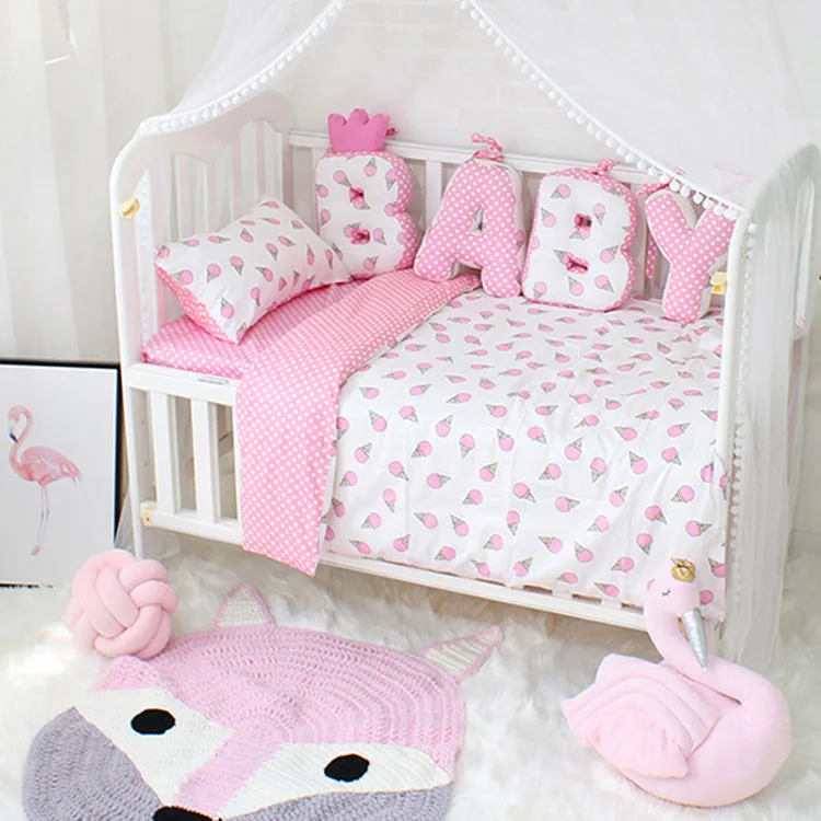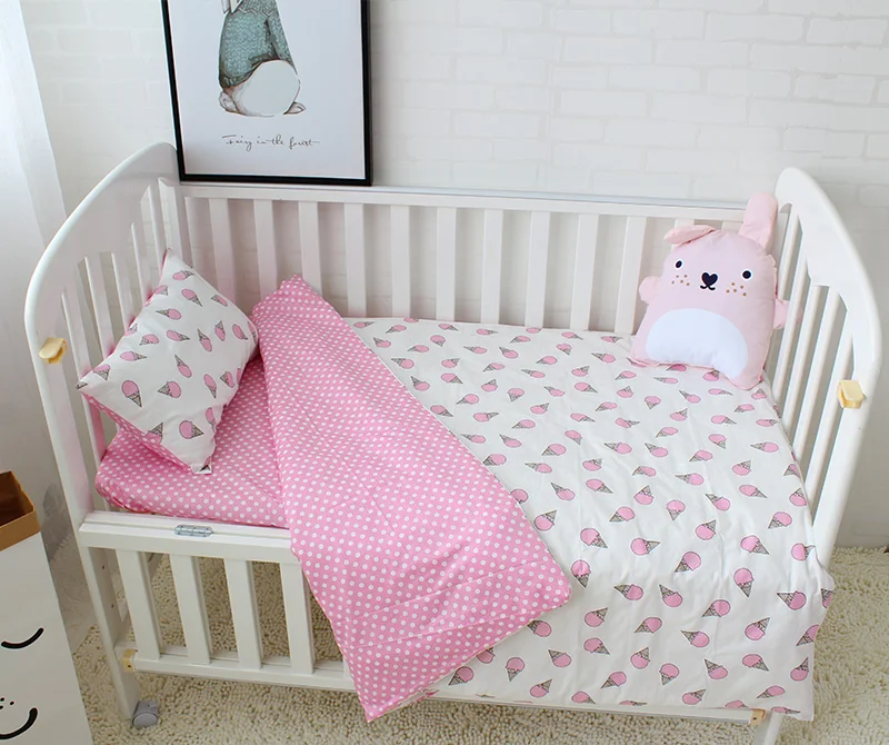 Cotton Baby Crib Bumpers 3pcs Quilt Pillow Cartoon Cot Bed Sheet Bed Linen Set Baby Crib Bedding Sets