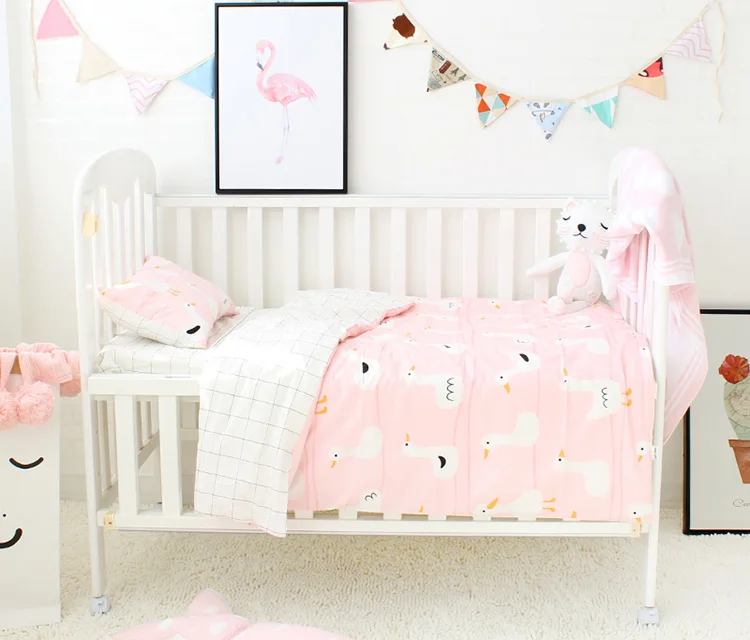Custom High Quality Printed Cotton Material Summer Used Baby Quilt Blanket Cover Sheet 3 Piece Crib Bedding Set