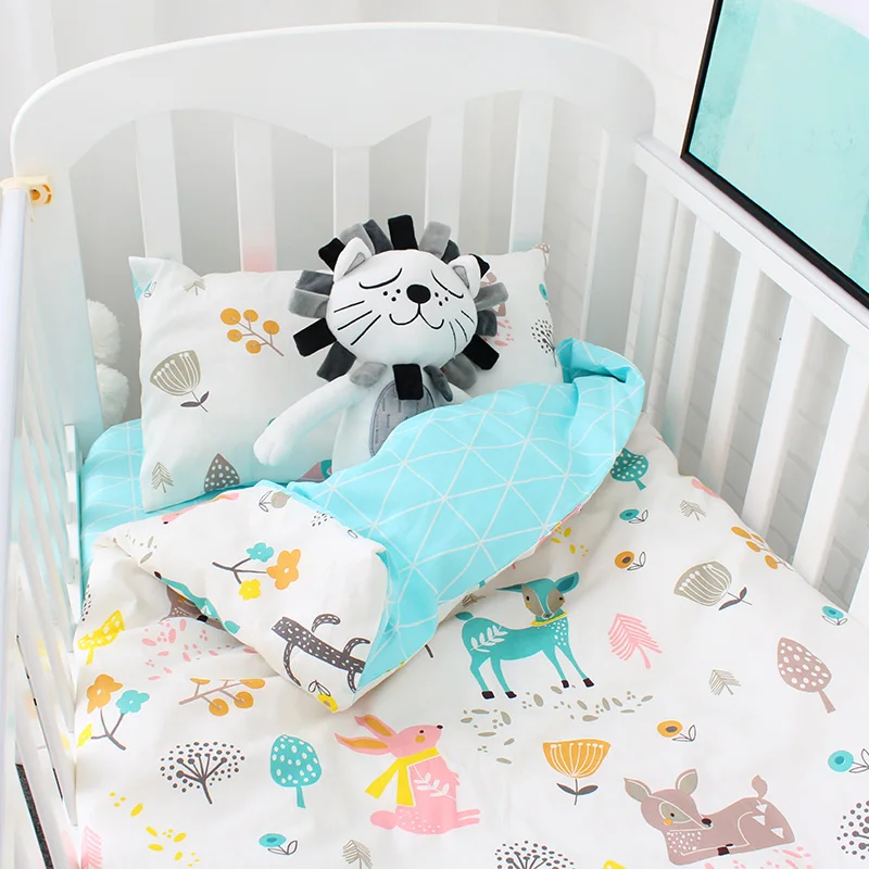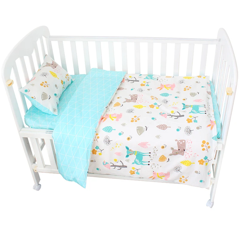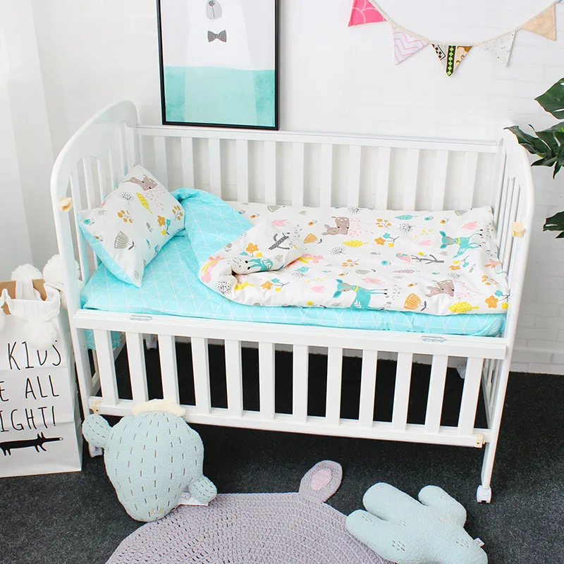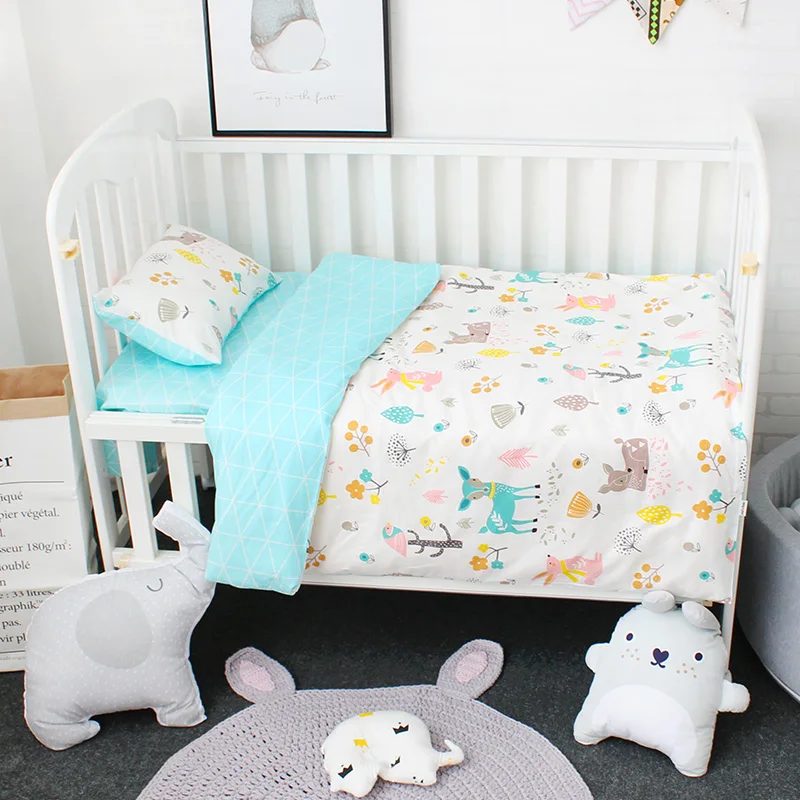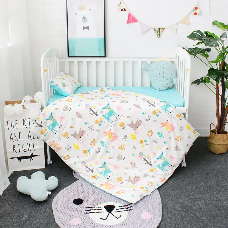 Custom High Quality Printed Cotton Material Summer Used Baby Quilt Blanket Cover Sheet 3 Piece Crib Bedding Set