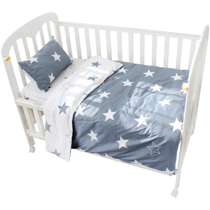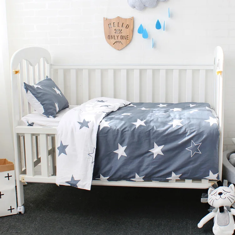 Plain Flash Pattern Newborn Babi Girl Boys Sleep Quilt Pillow Cover 3 Piece Crib Bedding Cot Set For Baby