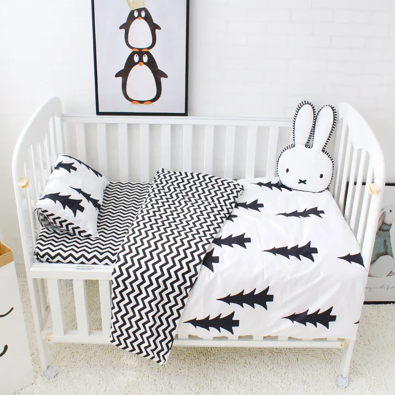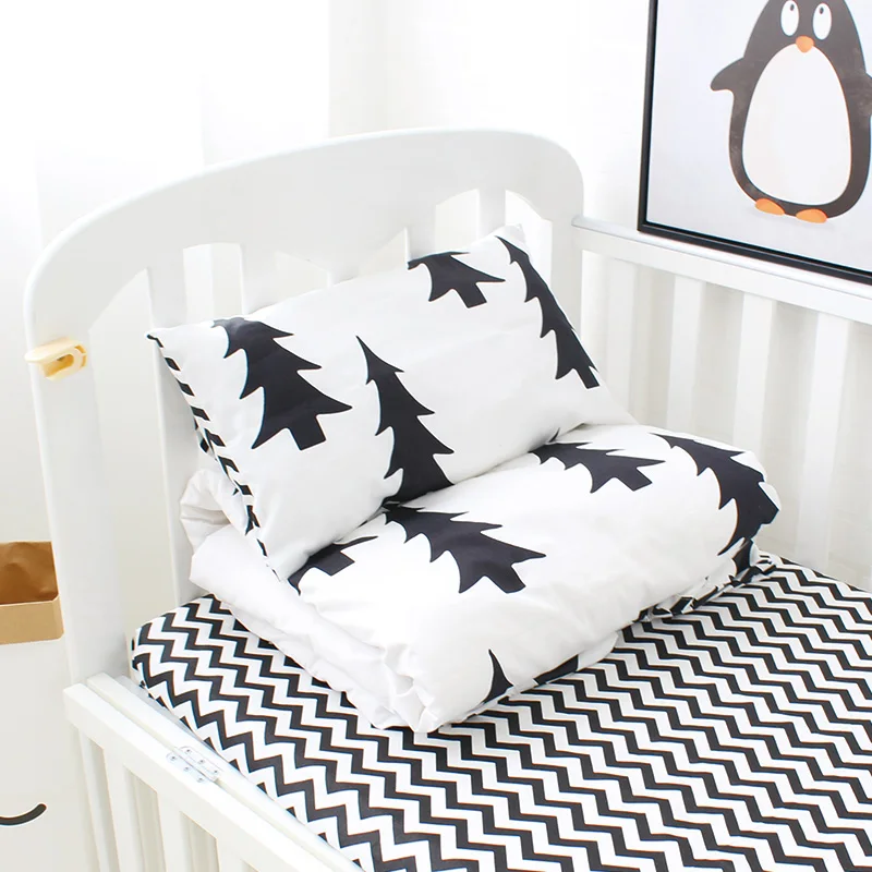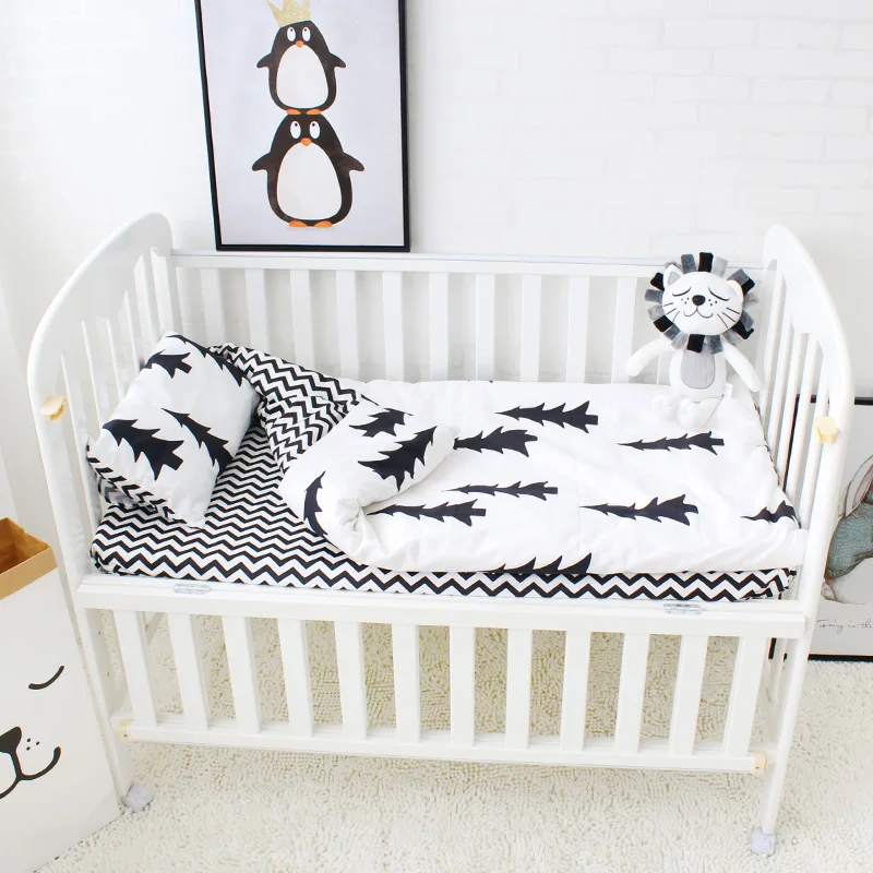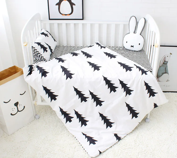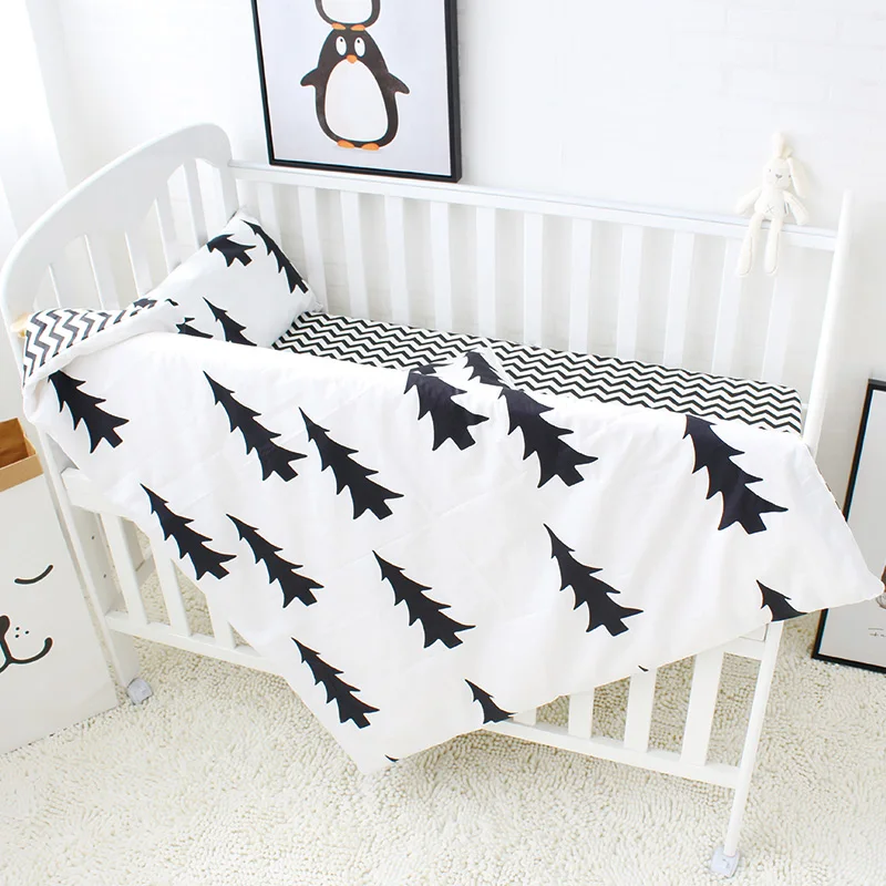 Big Black Tree Print Cotton Nursery Crib Baby Quilt Blanket Pillow Cover Bedding 3 Piece Sets For Boys Girls