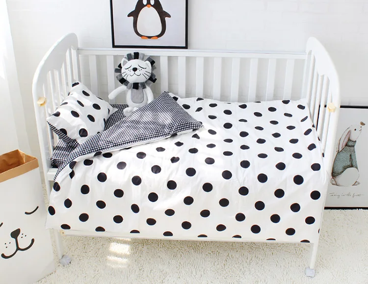 Custom Black White Dots 100% Cotton Baby Night Sleeping Bedding 3 Piece Set Babi Crib Quilt Pillow Cover