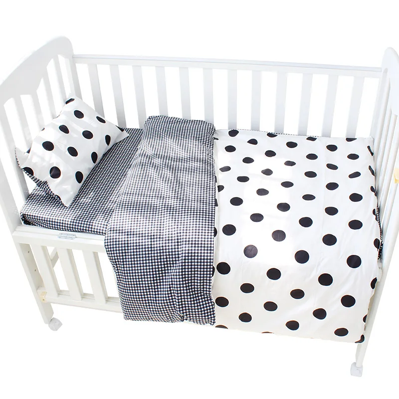 Home > Products > Baby Bedding > Custom Black White Dots 100% Cotton Baby Night Sleeping Bedding 3 Piece Set Babi Crib Quilt Pillow Cover