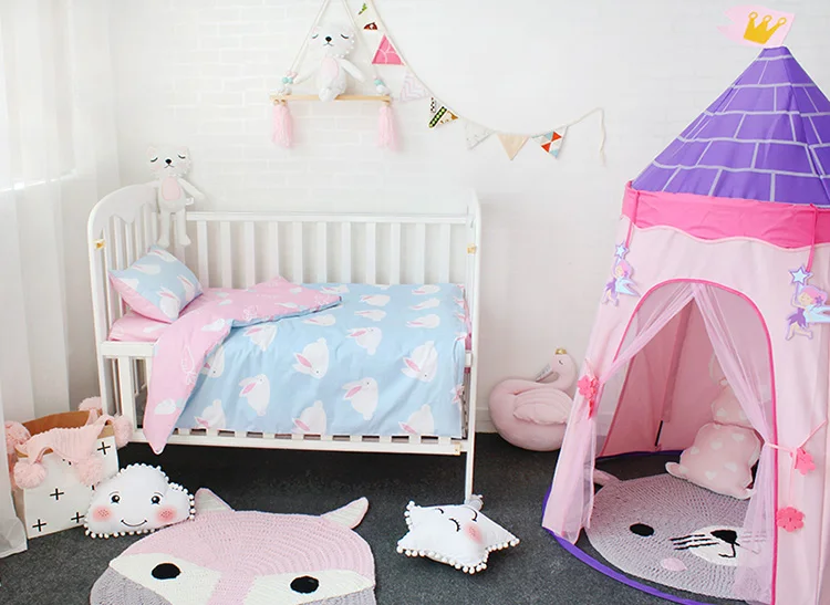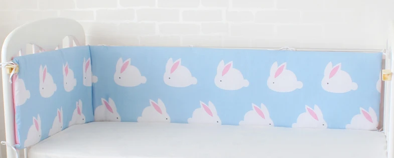 Home > Products > Baby Bedding > Organic Cotton Blue Rabbit Printed 3D Infant Bedding Cot Bumpers Set