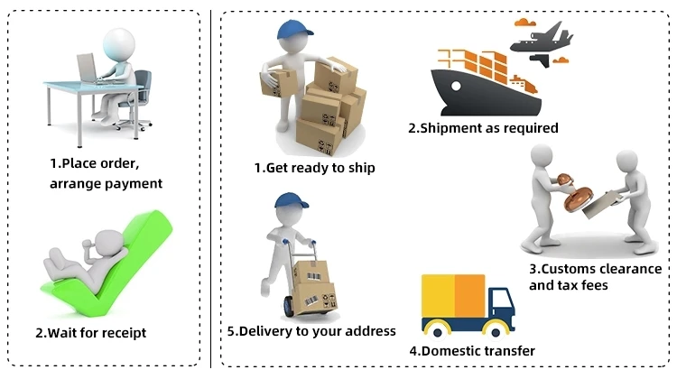 A: We have door-to-door service. Europe, USA, Canada, Australia, and more. You can just wait for delivery without doing or paying anything.