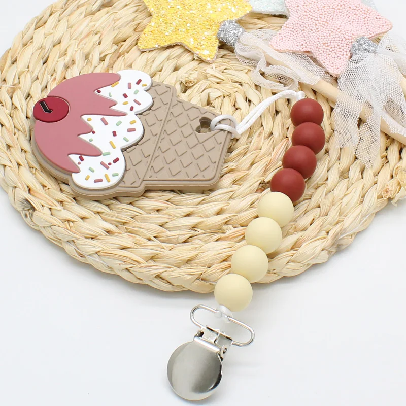 Home > Light Industry & Daily Use > Baby Goods > Feeding Supplies > 2020 New Design BPA Free Food Grade Chewing Silicone Teething Toys With Pacifier Clip Chain