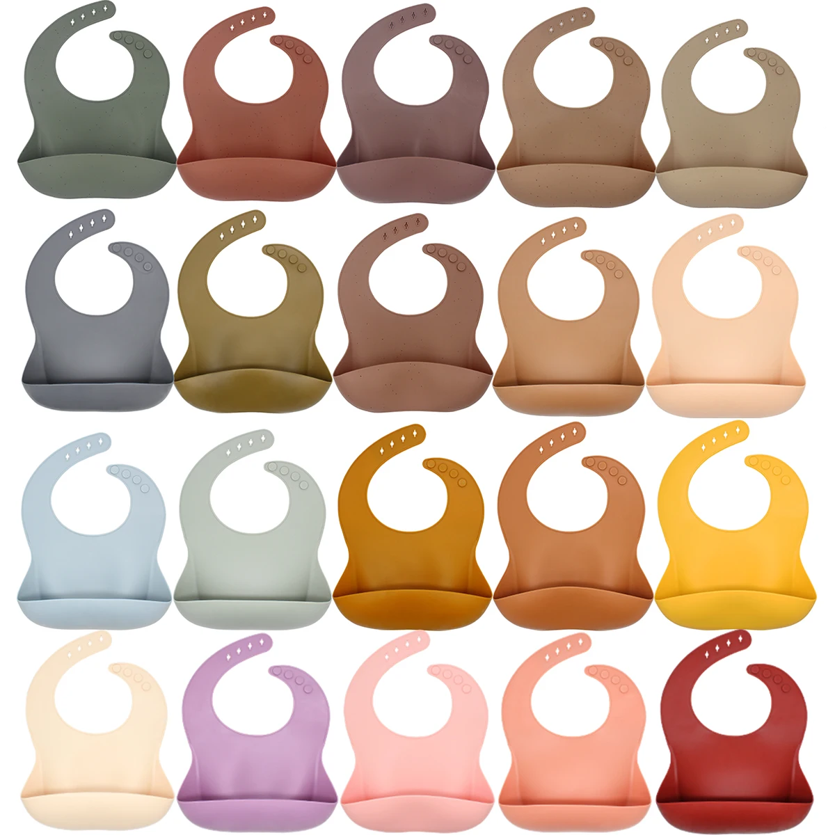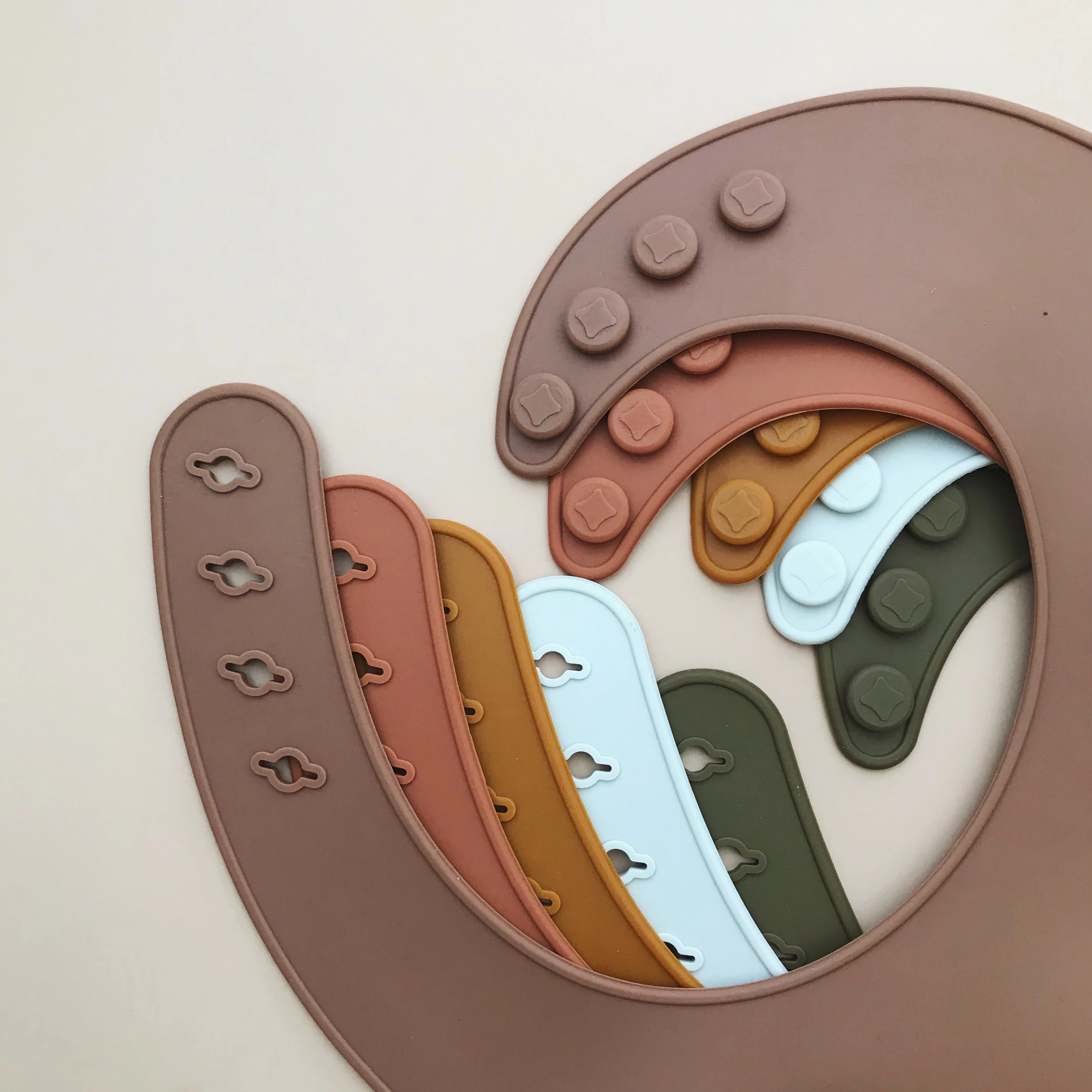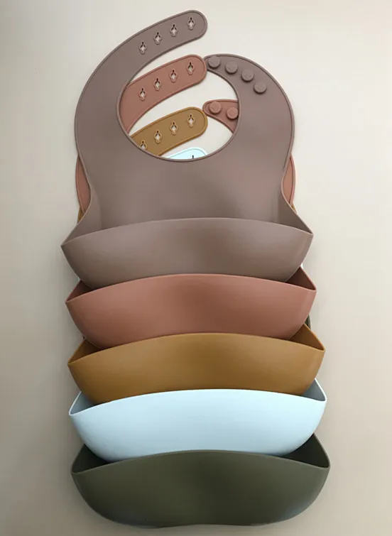 FDA 100% Food Grade Easily Clean Adjustable Snaps Silicone Baby Waterproof Feeding Bib For Infants And Toddlers