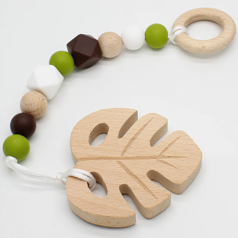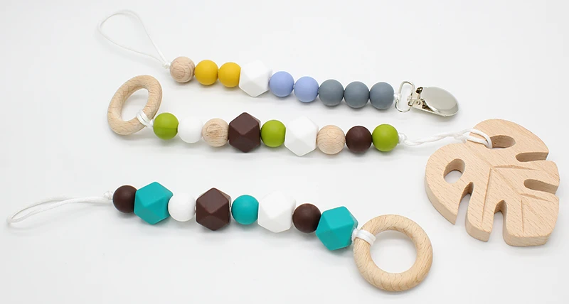 Home > Products > Silicone/Wooden Baby Products > Hot Sale New Design Anti-off Food Grade BPA Free Cute Pacifier Holder Chain Clip Baby Wooden Dummy Pacifier Clip Chain