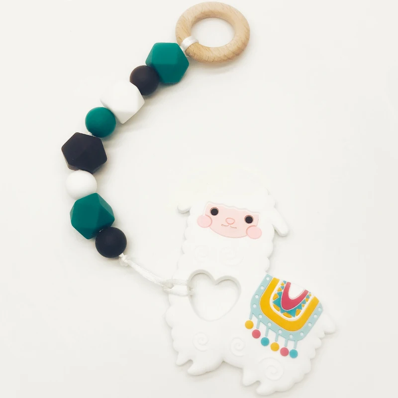 Home > Products > Silicone/Wooden Baby Products > Wholesale Food Grade Natural Animal Cute Alpaca Shape Chewing Silicone Nursing 3d Teether Beads