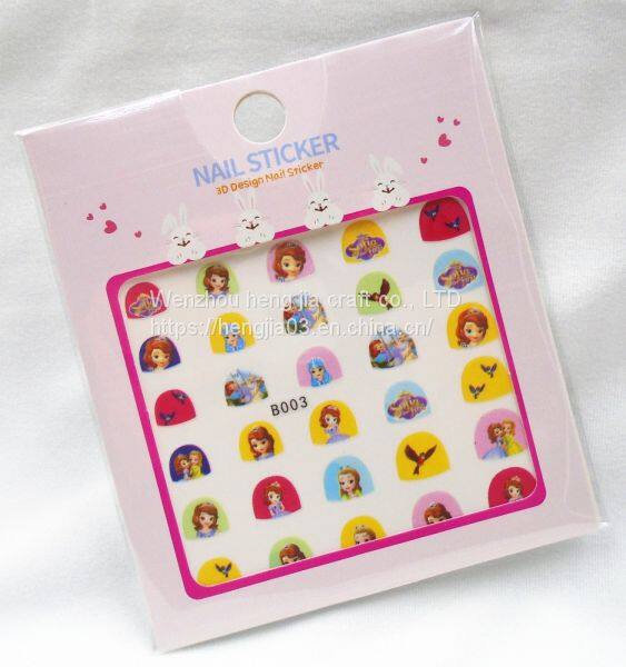 3D Cartoon Kids Wholesales Nail Sticker for Children Back Adhesive Decal Decoration Nail Sticker