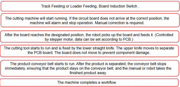 2. Automatically feeding boards accurately, saving the trouble of manual v-cut socred, effectively improving the efficiency of the separate boards, and preventing the artificial waste plate from being caused by the slot.