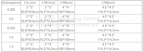 BeO CERAMIC SUBSTRATE STANDARD SIZE