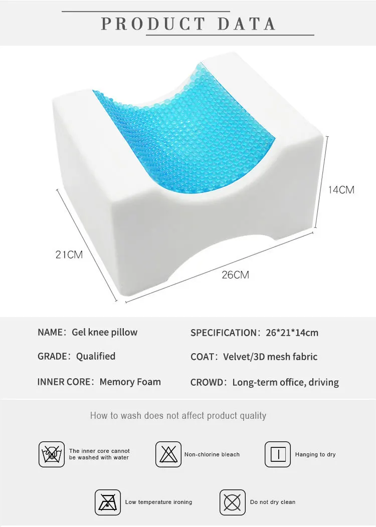 Home > Products > Pillows > Amazon Hot Sale Leg Elevation Cushion Cooling Gel Memory Foam Hip Leg Aligment Knee Pillow Orthopedic Cushion For Side Sleepers