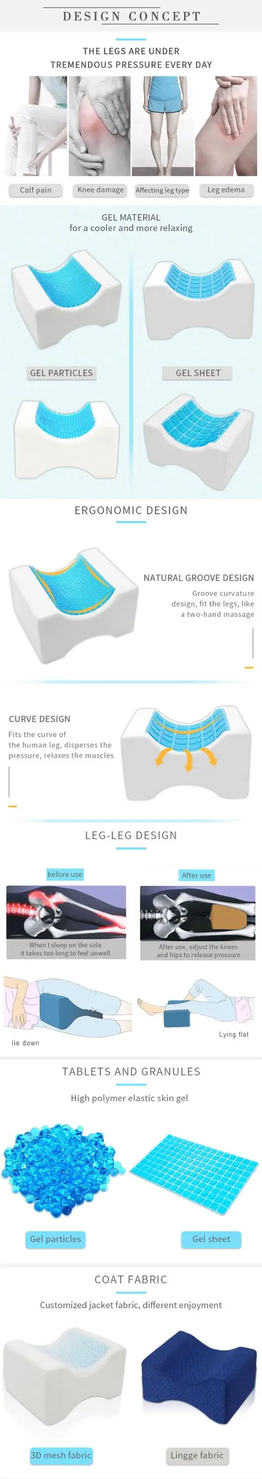Amazon Hot Sale Leg Elevation Cushion Cooling Gel Memory Foam Hip Leg Aligment Knee Pillow Orthopedic Cushion For Side Sleepers