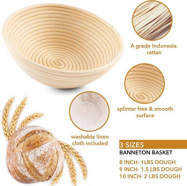Pure Handmade Rattan Banneton Bread Proofing Fermentation Basket with Cloth Cover
