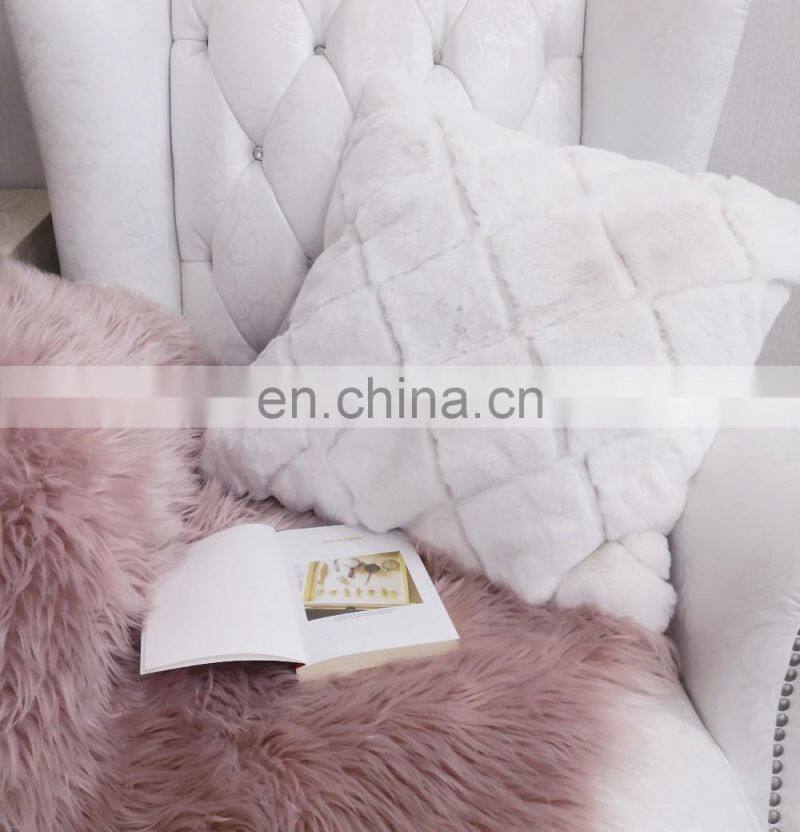 Faux Rabbit Fur Quilting Cushion ,Good Quality Fashion Sofa Chair Fake Fur Cushion