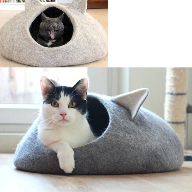 Customizable Removable Handmade Felt Wool Cat Cave House Dog Bed Cat Nest